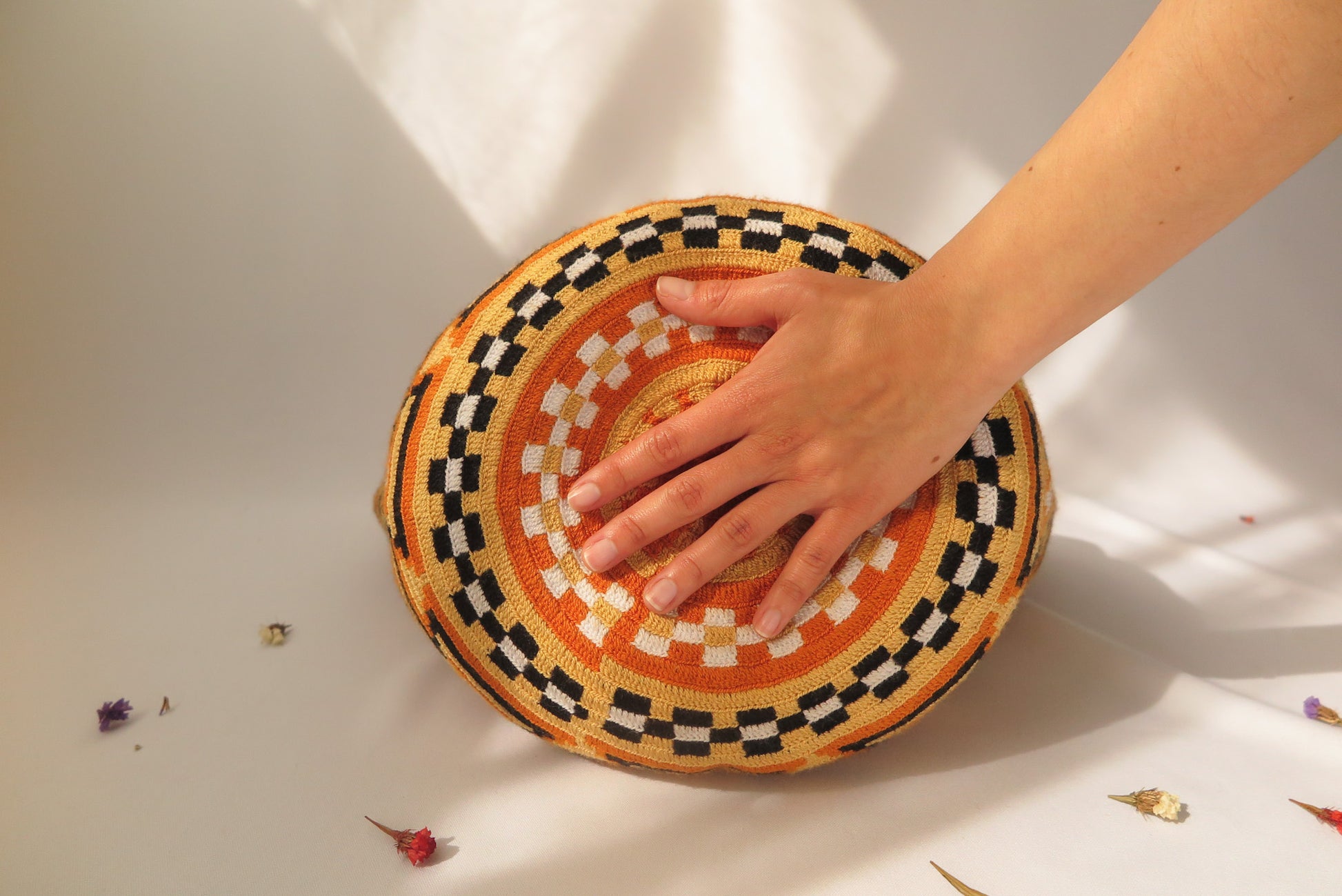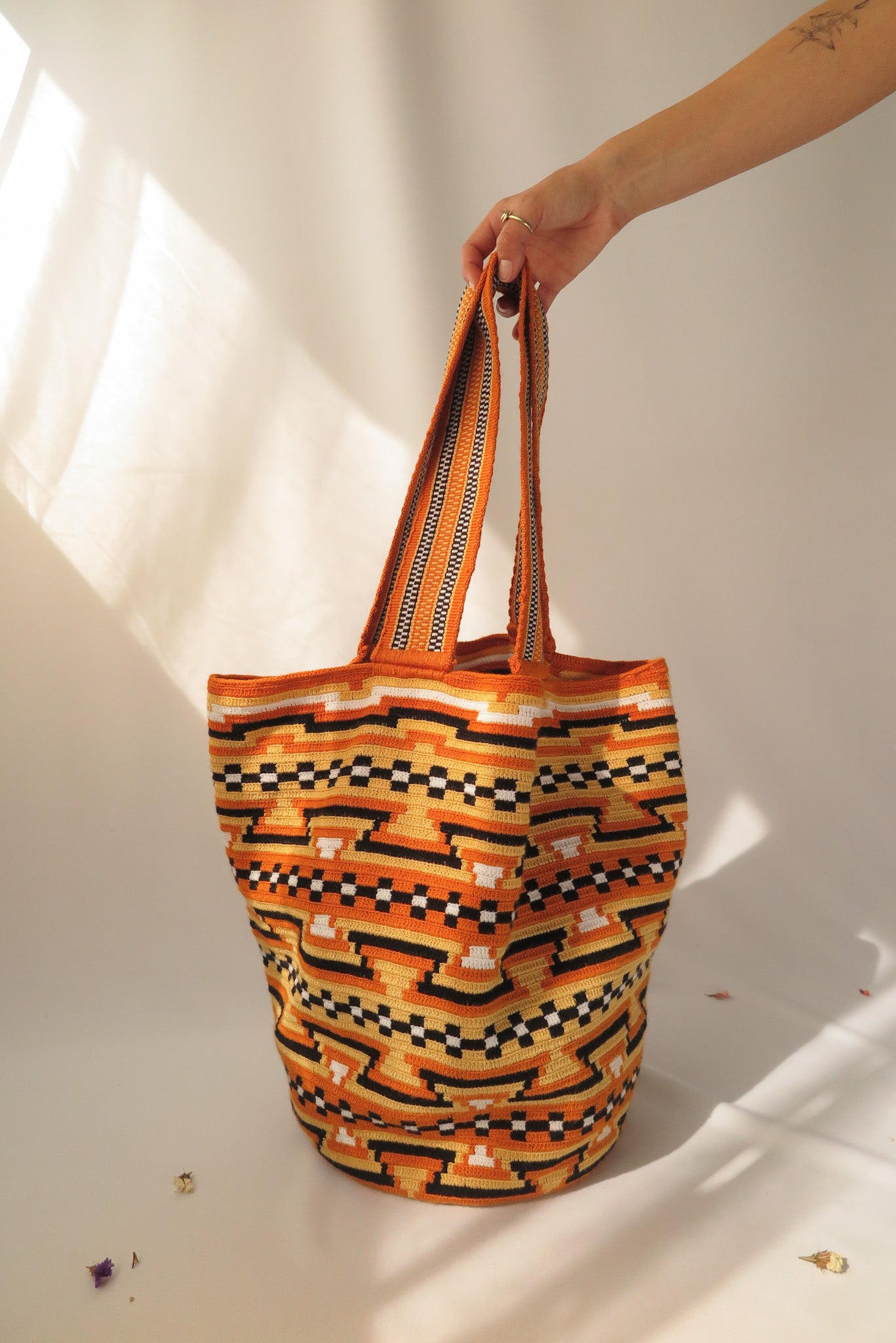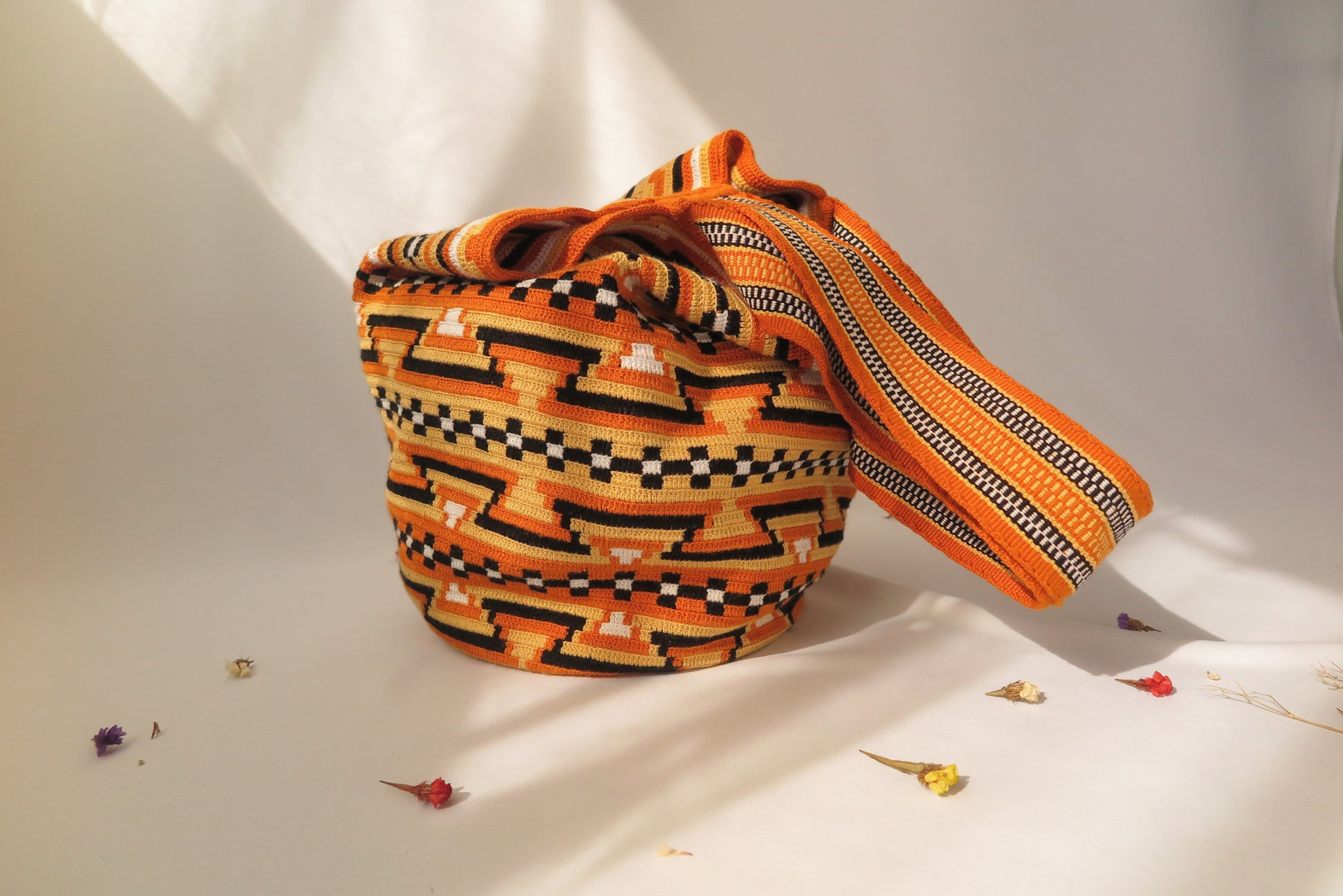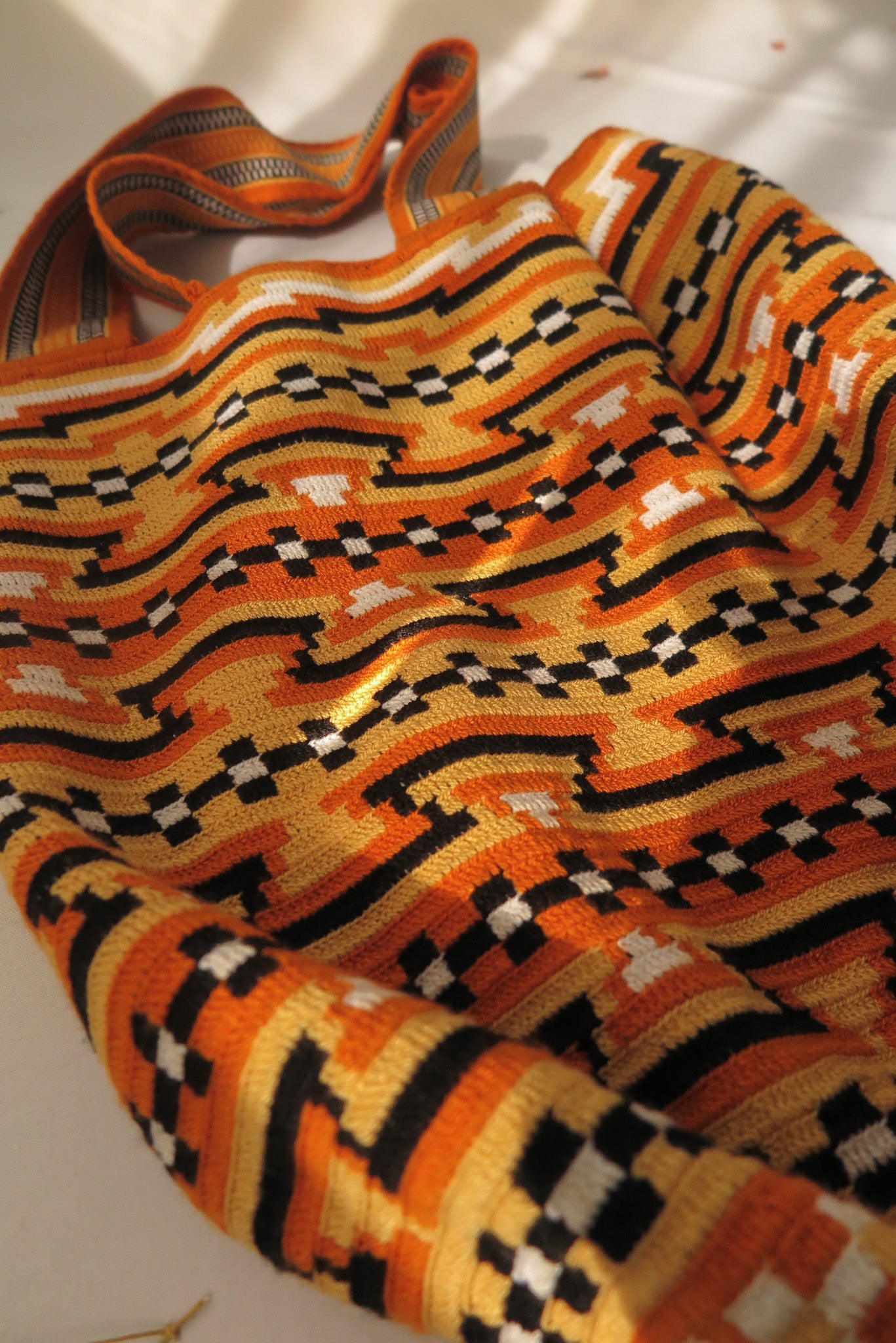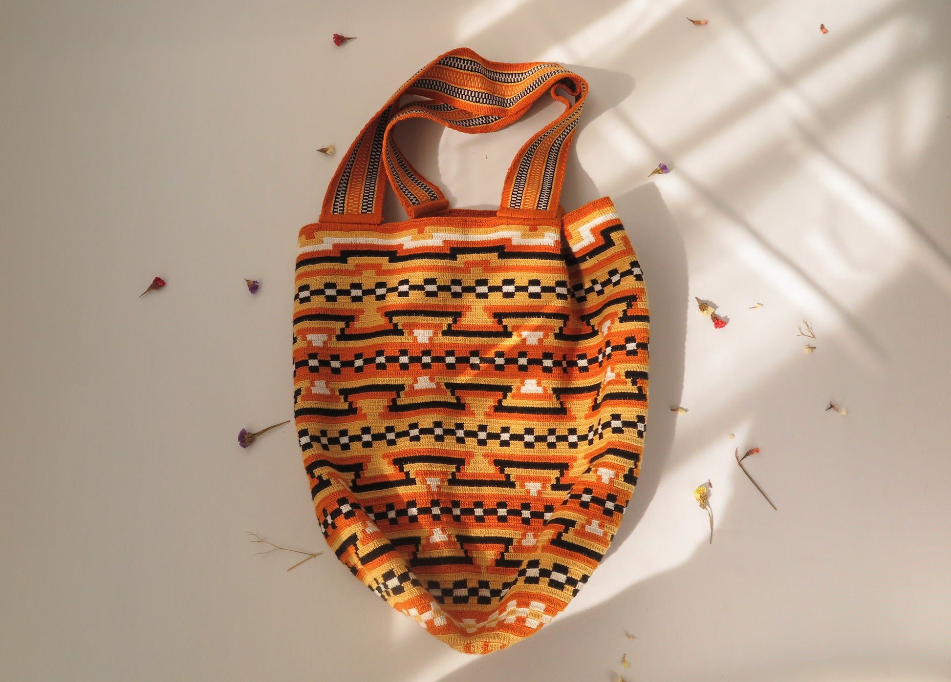 ✨ Descubre el bolso Susu Kai, una pieza tejida a mano por mujeres Wayuu durante 28 días, reflejo de moda lenta, arte y tradición viva.